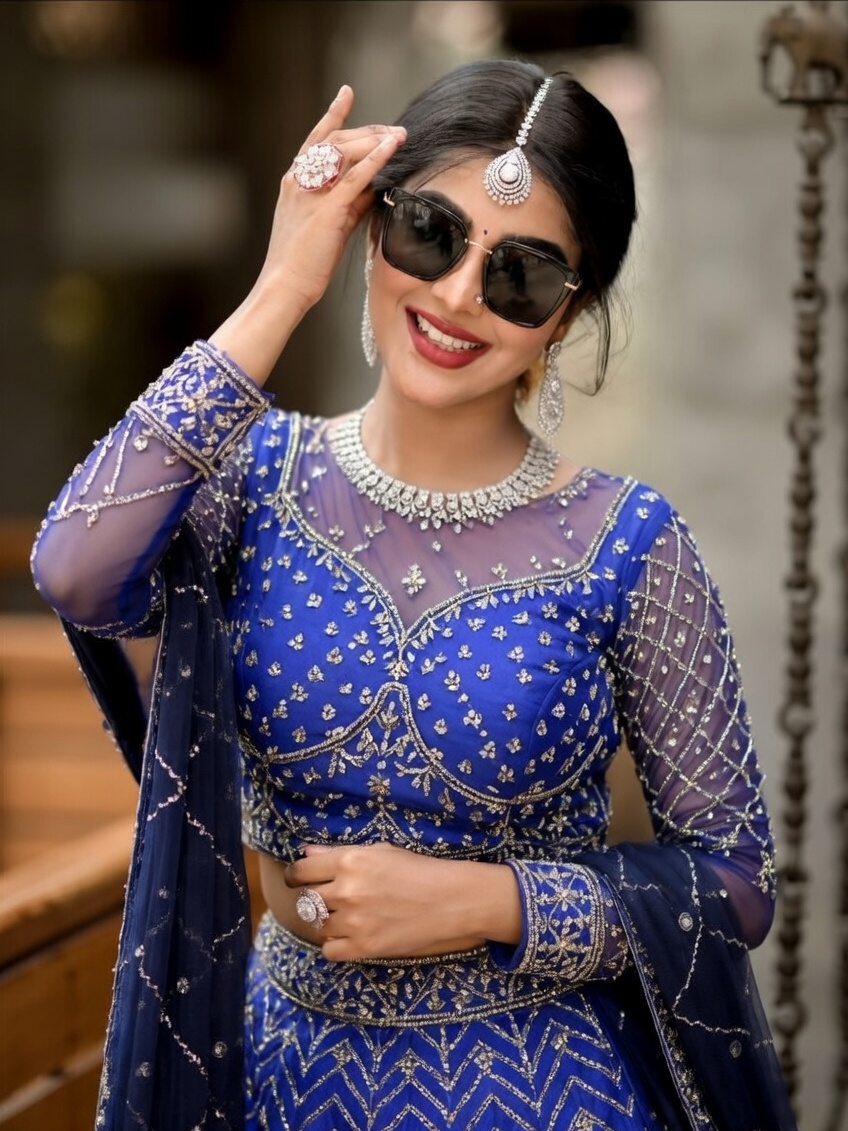 Radiant and graceful look for engagement and family gatherings.